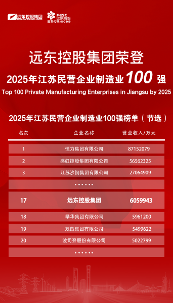 實(shí)力上榜!遠(yuǎn)東榮登2025江蘇民營(yíng)企業(yè)百?gòu)?qiáng)22位
