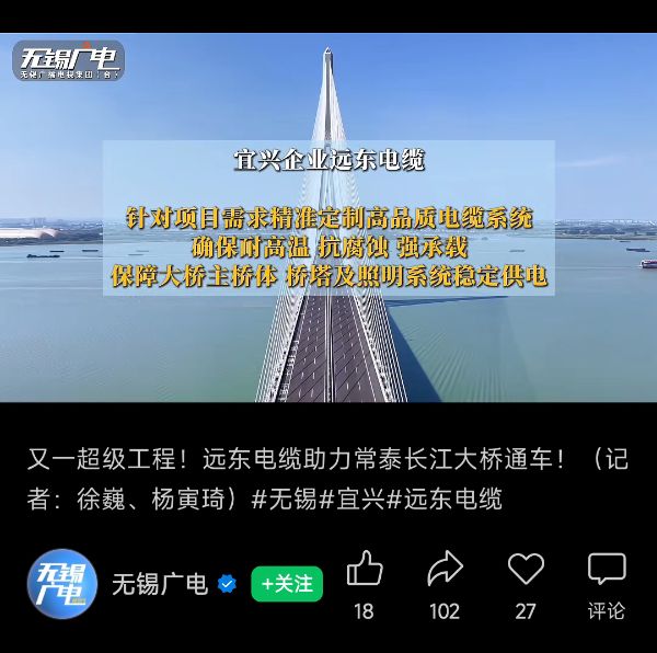官媒點(diǎn)贊!遠(yuǎn)東助力世界最大跨度斜拉橋——常泰長(zhǎng)江大橋通車(chē)!